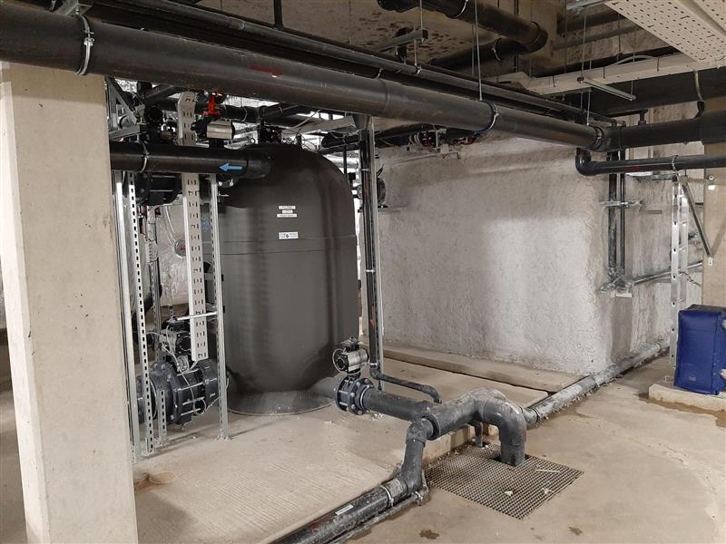 Le site est équipé de filtres à perlite, une solution offrant une très haute performance de filtration tout en optimisant l’espace du local technique : un filtre à perlite peut occuper jusqu’à 3 à 4 fois moins de place qu’un filtre traditionnel.